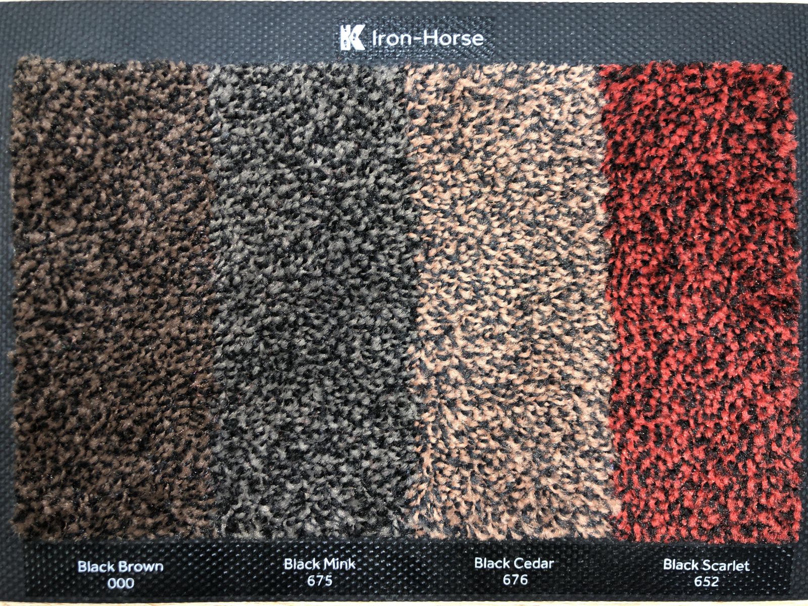 Килим IRON HORSE розроблений так, щоб відповідати найсуворішим вимогам. Його ворс, виконаний з фарбованих наскрізь 100 % нейлонових волокон, усуває бруд і вологу з підошви взуття, затримуючи її між волокнами.