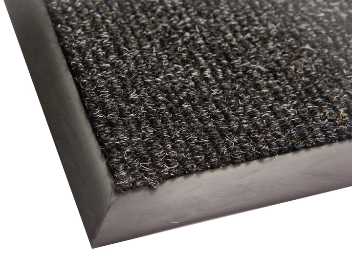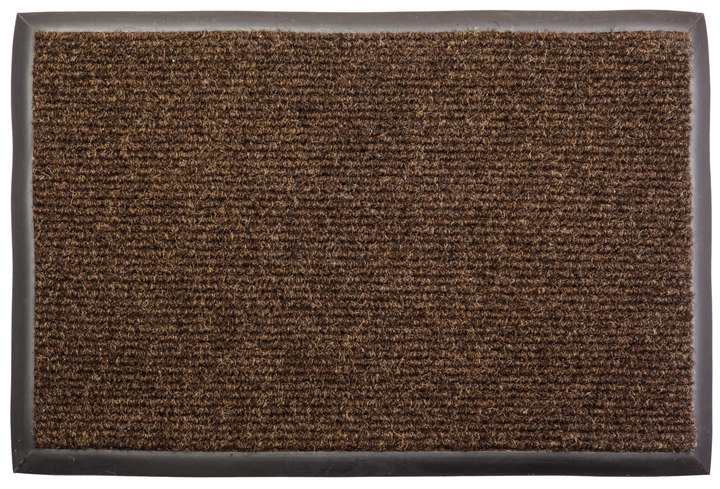 Килим з гумовим обрамленням і водонепроникною основою. Має петельну структуру ворсу зі смугами, щільний.