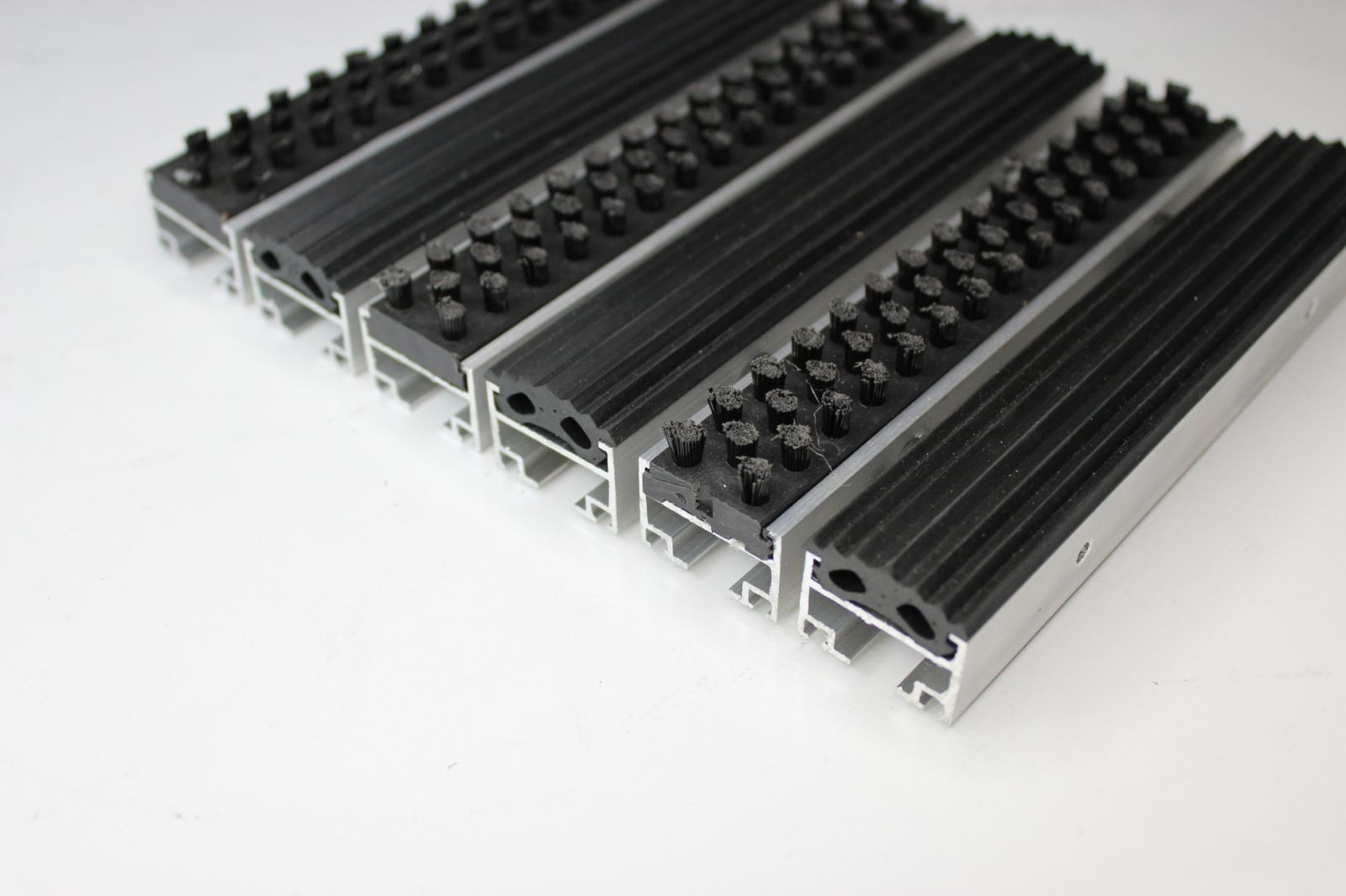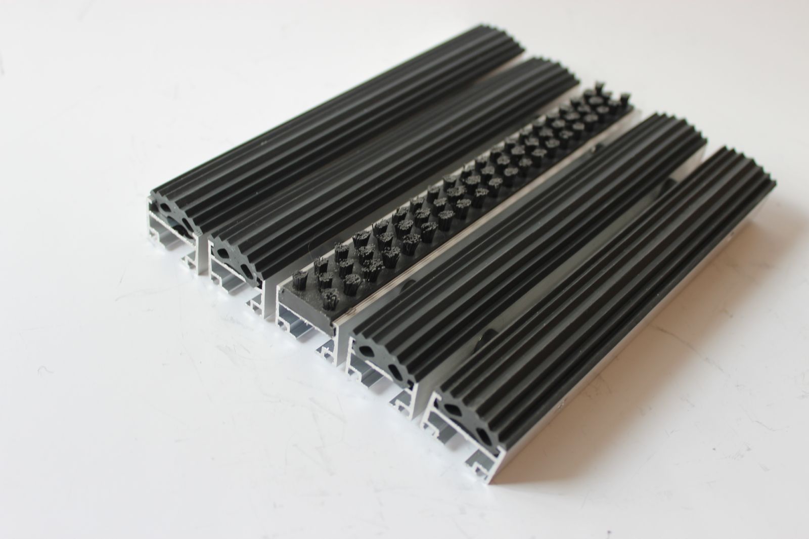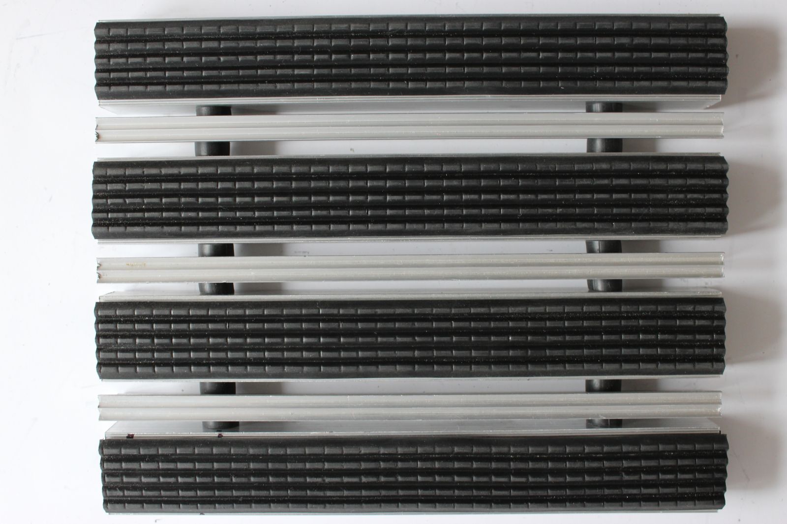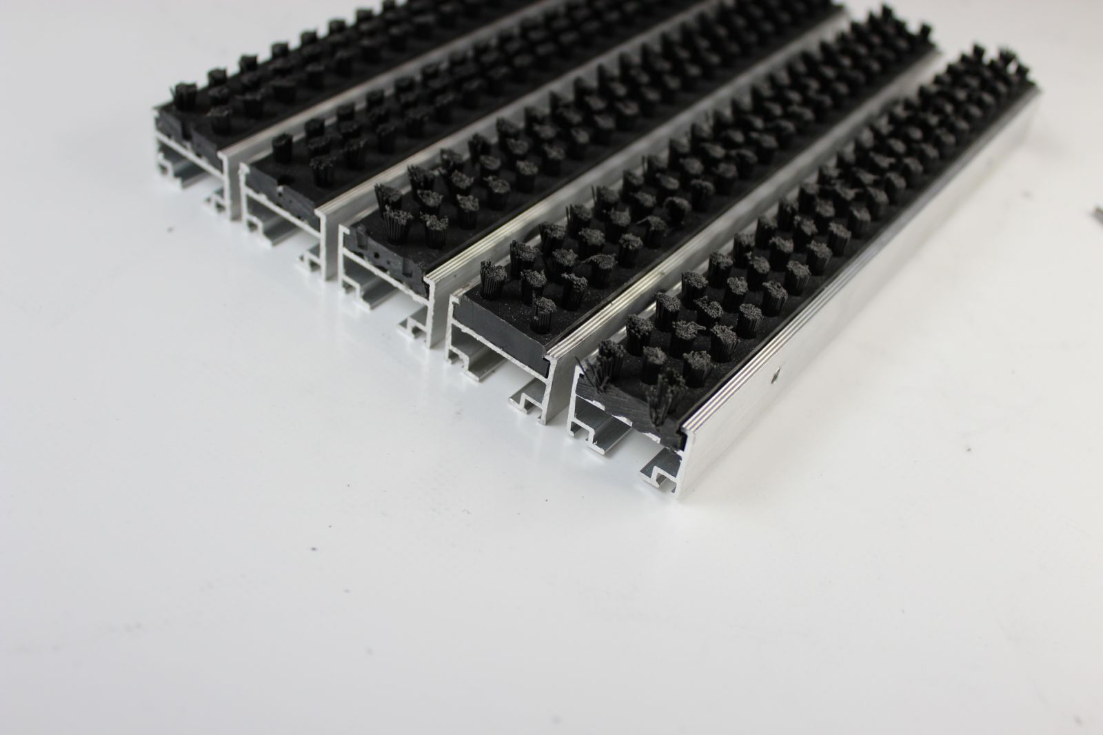 Конструкція з алюмінієвого профілю заповненого миючими вставками з гуми, щітки, сребка, текстилю, які можливо набирати в різних комбінаціях. Між собою профілі стягуються оцинкованим тросом, що дозволяє виготовити решітку з мінімальним зазором 4-6 мм. Нижня частина алюмінієвого профілю доповнена гумовим профілем для безшумного використання на поверхні.