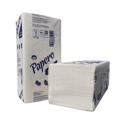 Білі паперові рушники VV укладання Papero — виготовляються з екологічно чистої целюлози, характеризуються м'якою текстурою і хорошою поглинаючою здатністю.