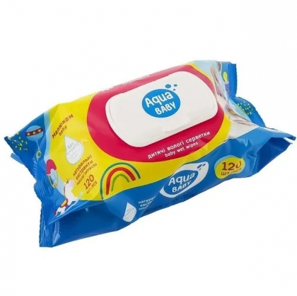 Серветки вологі 120 шт. AquaBaby дитячі ромашка з клапаном