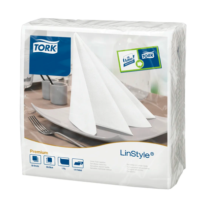 Серветки Tork Linstyle® виробляються з целюлози за технологією Airlaid (дослівно «повітряне укладання»). Повністю замінюють тканинні серветки. Виглядають і відчуваються як тканина, проте, значно м'якше, об'ємніше і гігієнічніше. І більше ніяких прань!