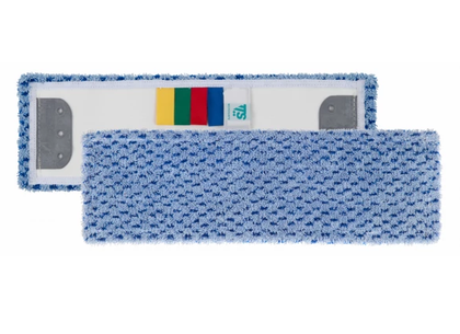 Плоский петлевий моп із блакитної мікрофібри у синю смужку. Кількість циклів прання: 250. Ідеально підходить для професійного очищення підлоги, стін і стелі, як для сухого так і для вологого прибирання та дезінфекції. Рекомендований для шорстких поверхонь із середнім і низьким ступенем забрудненості. Використовується з основою Wet System Light та Wet System Light з блокуванням.