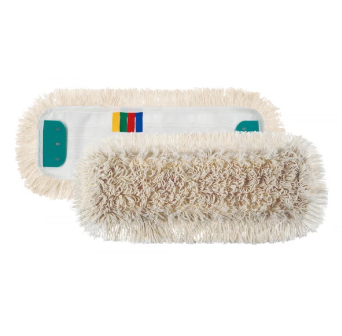 Плоский петельний моп із бавовни (з обрізаної нитки) з основою з поліестру (70% бавовни, 30% синтетична тканина). Витримує 100-150 циклів прання.
