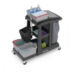 Возик для прибирання ECO-Matic EM3 пропонує великий контейнер для сміття на 120 л, зручне зберігання на полицях, верхній лоток для зберігання.